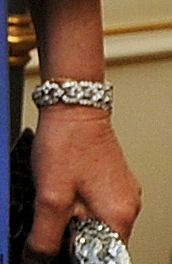 Below is a more detailed picture of Camilla's bracelet which she wore during the evening reception on an official visit to Spain on March 29, 2011. This is the same bracelet that Camilla wore for Charles' 60th birthday portrait.