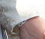 The other side of the disk is engraved with something different. It looks like a print C surrounded by a circle and something above the circle. Note also that 4 or 5 links are hanging since the bracelet is too big on her wrist. She's attached the closure of the bracelet to a different link than the end.