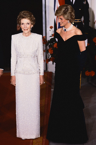 First Lady Nancy Reagan Standing with Princess Diana Princess Diana attends a dinner with First Lady Nancy Reagan. |