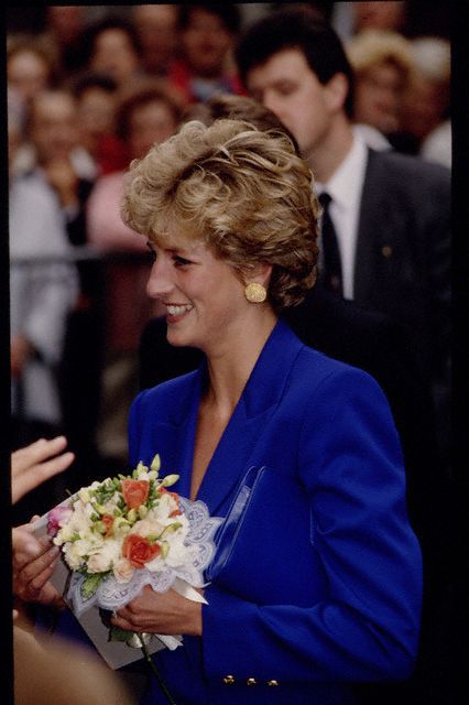 Diana Visiting Lille Princess Diana wears a navy pinstriped blazer on a visit to France. |