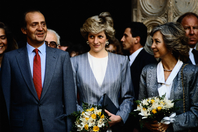 King Juan Carlos, Princess Diana, and Queen Sofia in