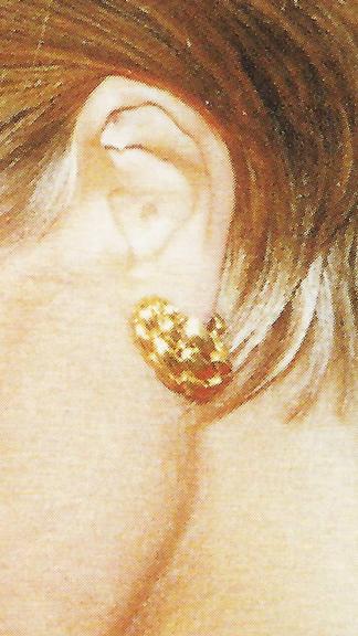 I thought these were the same earrings as the one just before this but after looking at pictures from books, this pair doesn't have any bows and the hearts are in silver which drop from a yellow gold ball with chain. This pair is a two-tone earrings.