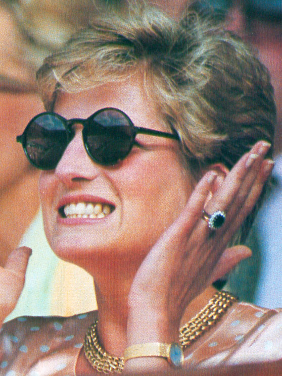 Princess Diana in "D" Necklace Princess Diana wears a "D" necklace to a polo match in Australia. |