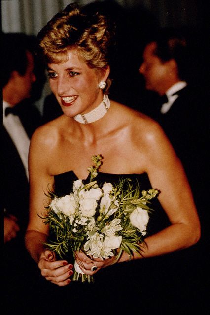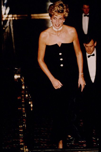 Princess Diana at Royal Albert Hall Princess Diana attends a performance of Swan Lake at the Royal Albert Hall wearing a dress by Azagury. |