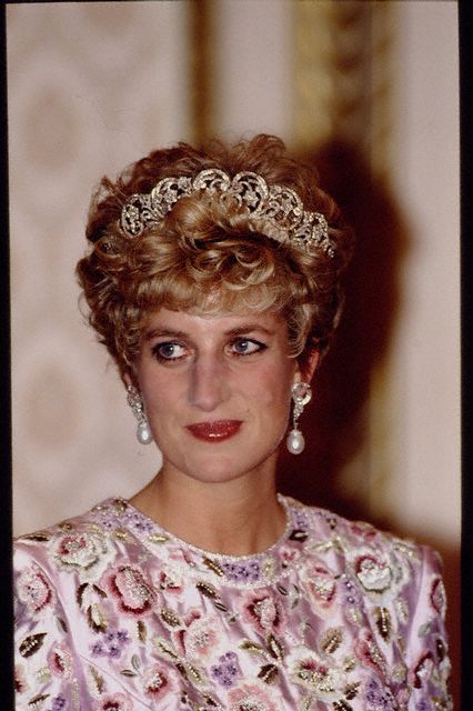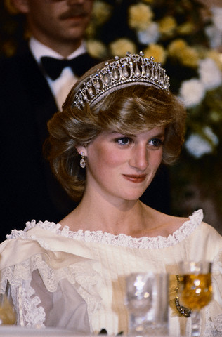 Princess Diana Wearing Tiara Princess Diana wears Queen Mary's tiara at a dinner banquet. |