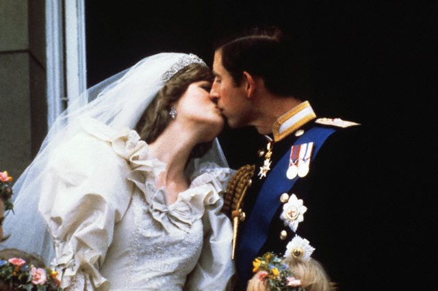 Royal Couple's Wedding Day Kiss The Prince and new Princess of Wales kiss on the balcony of Buckingham Palace after their marriage at St. Paul's Cathedral. |