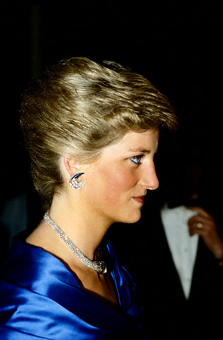 Princess Diana Wearing Blue Evening Gown Profile of Princess Diana in blue satin evening gown. |