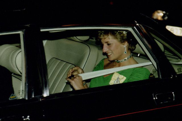 Princess Diana Attending a State Reception Princess Diana wears a suite of sapphire and diamond jewels presented by the Crown Prince of Saudi Arabia, and the Spencer family tiara. |